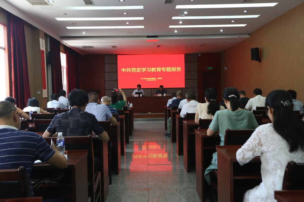 杨晓波作《中共党史学习教育专题报告》,回顾了中国共产党成立至今的百年辉煌历程,用一个个鲜活的事例,再现了中国共产党团结带领全国各族人民从站起来到富起来、再到强起来的伟大奋斗史。报告指出,开展中共党史学习教育,是持续深入学习贯彻习近平新时代中国特色社会主义思想的必然要求、是坚持好发展好完善好我国新型政党制度的应有之义、是加强中国特色社会主义参政党建设的重要举措;要全面了解中国共产党百年奋斗的光辉历程和历史性贡献,就要认真研读关于中国共产党史的基本著作;坚持学思用贯通、知信行统一,不断用中国共产党的创新理论武装全党教育人民,推动习近平新时代中国特色社会主义思想深入人心,落地生根,铸牢全体人民团结奋斗的共同思想基础。报告强调,“征途漫漫,惟有奋斗”。百年只是序章,未来必将可期。站在历史和未来的交汇点上,新的伟大征程正在我们面前展开,我们要更加紧密地团结在以习近平同志为核心的党中央周围,以更加坚定的决心、更加昂扬的姿态,开启新征程、奋进新时代,以优异的成绩庆祝中国共产党建党一百周年。