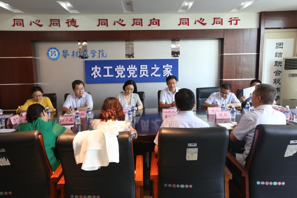 报告会结束后,杨晓波一行还参观了学校农工党党员之家并与学校农工党党员代表进行了座谈。杨晓波表示,农工党攀枝花市委、攀枝花学院整体积极向上的精神面貌,给他留下了深刻的印象;充分肯定了农工党攀枝花市委、攀枝花学院扎实推进思想政治工作取得的优异成绩,党员代表提出的意见和建议都很宝贵,对推动思想政治建设工作有很大的帮助。