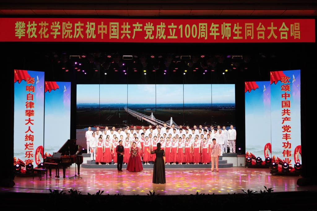 “你是最鲜艳的旗,现在我仰望着你,我将你送进晨风,致以诚挚的敬礼……”6月11日,“自律攀大人·歌献给党师生同台学党史活动在对党和祖国的深情礼赞中拉开序幕,激昂奋进的旋律、优美动人的歌声萦绕回荡,触动着每一个观众的心。老教授合唱团紧接献上《没有共产党就没有新中国》,一张张历经时光雕刻的面庞在熟悉的旋律中焕发出荣光,从峥嵘岁月一路歌唱到了繁荣时代……