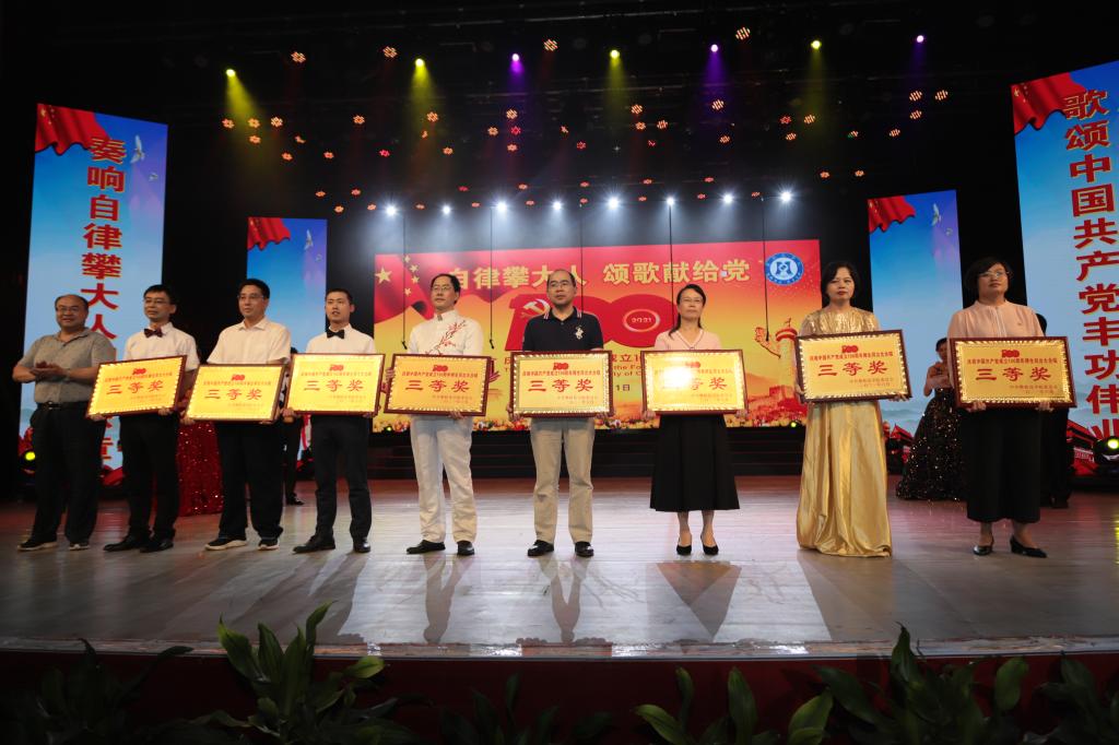 学党史活动在《攀大之歌》中走向尾声。听,在攀大人团结奋进干事创业的决心中,在为党育人为国育才的使命中,在擦亮自律奋斗底色的情怀中,现场氛围被歌声引向了高潮。经过激烈的角逐和评委的认真评选,教职工代表队、艺术学院获一等奖,老教授合唱团、大学生艺术团获荣誉奖,外国语学院、附属医院、经济与管理学院、智能制造学院获二等奖,基础医学院、土木与建筑工程学院、康养学院、生物与化学工程学院、钒钛学院、文学院法学院、数学与计算机学院、电气学院获三等奖