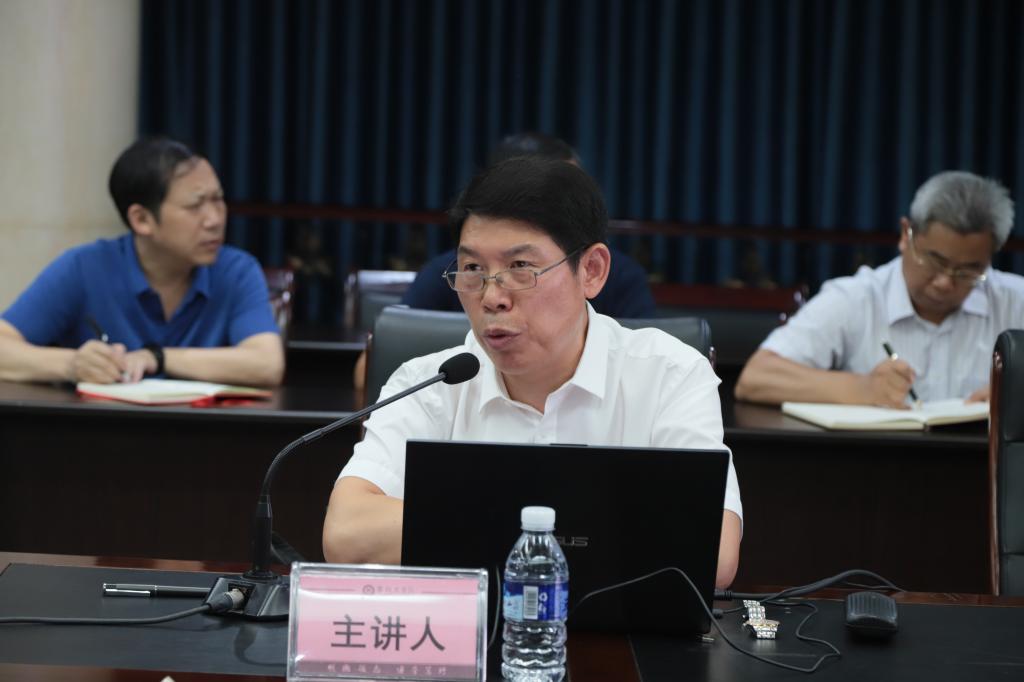 省纪委监委驻攀枝花学院纪检监察组组长、党委副书记、纪委书记彭徐用数据分析学校现状,明确学校存在的差距,提出学校发展要融合创新、整合资源,打造学科特色品牌,狠抓教学、科研质量,努力提升综合水平。