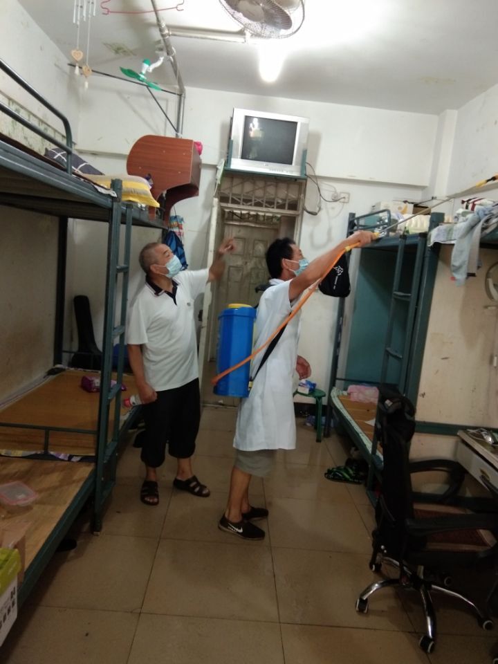 学校大范围的维修改造,给负责垃圾清运、道路清扫的物业人员增加了工作量。静明湖水面枯枝落叶较多,工人们顶着烈日清理,保持湖水清洁。修缮全部教学楼破损课桌椅、门窗,清扫校园人行道、运动场地共计2.5万平米,租用环卫清扫车清洗路面。
