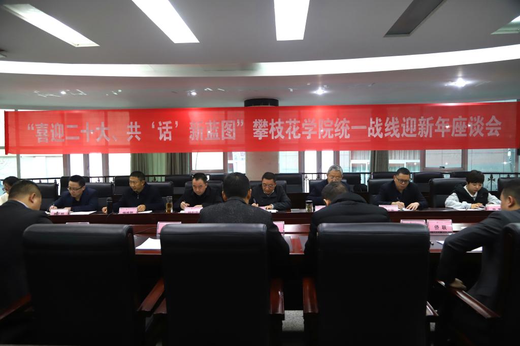 1月12日,学校在四楼会议室召开统一战线迎新年座谈会,校党委副书记胥刚出席会议并讲话。学校党政办公室、党委组织部、党委教师工作部相关负责人,民主党派攀枝花学院支部(总支)主委和副主委、统战团体班子成员,学校四川省、攀枝花市及东区人大代表、政协委员,统战部全体成员参加会议。座谈会由党委常委、党委统战部部长兼党委宣传部部长王明辉主持。