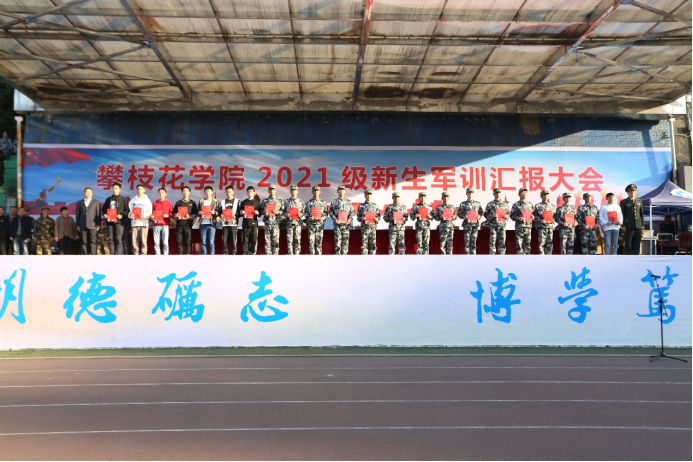 1月7日下午,我校2021级新生军训汇报大会在田径运动场隆重举行。校党委副书记胥刚、东区武装部上校部长康贺卫出席大会,学校相关职能部门负责人、各二级学院书记、分管学生工作领导、学生科科长、新生辅导员、志愿者、医生,以及2021级新生全体参训学员参加大会。大会由学工部部长周传兴主持。
