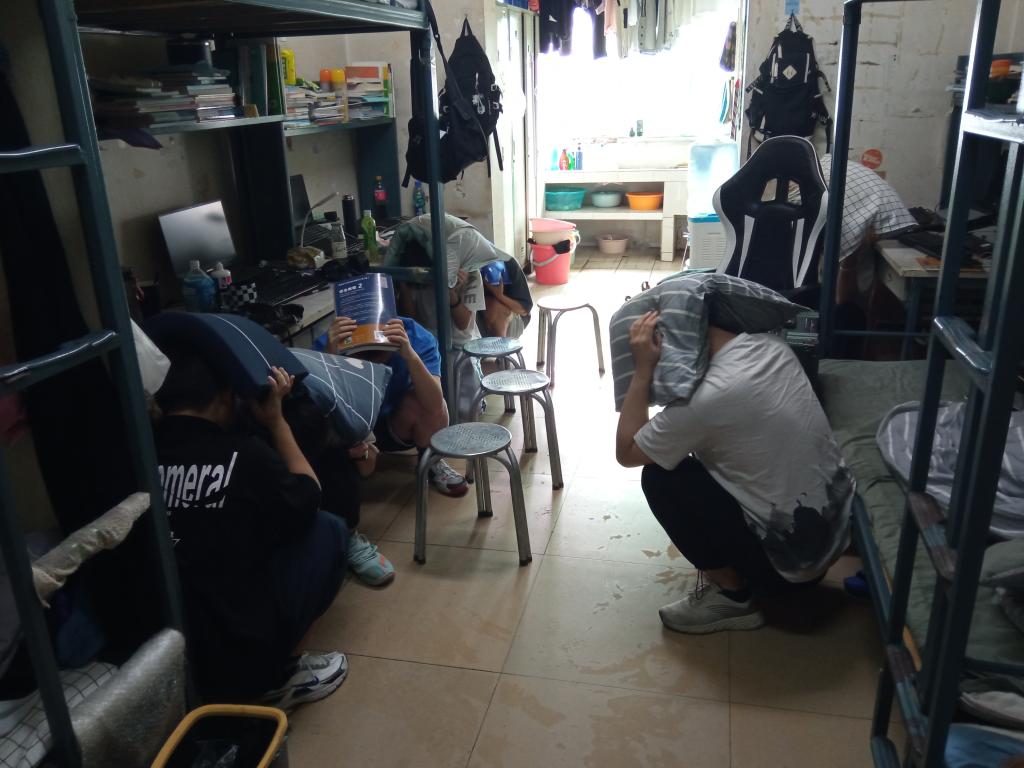 30秒后,第一次地震波结束,在授课教师、志愿者和公寓管理员等指引下,学生们迅速从教室、寝室、图书馆等地有序疏散,安全迅速到达各集结点并清点人数。
