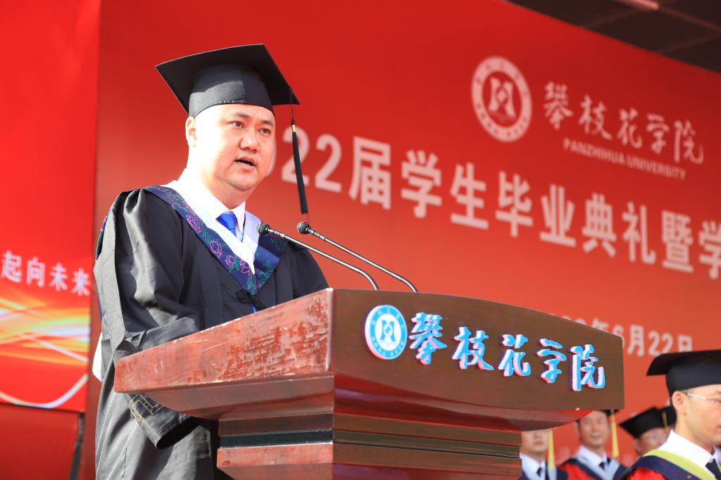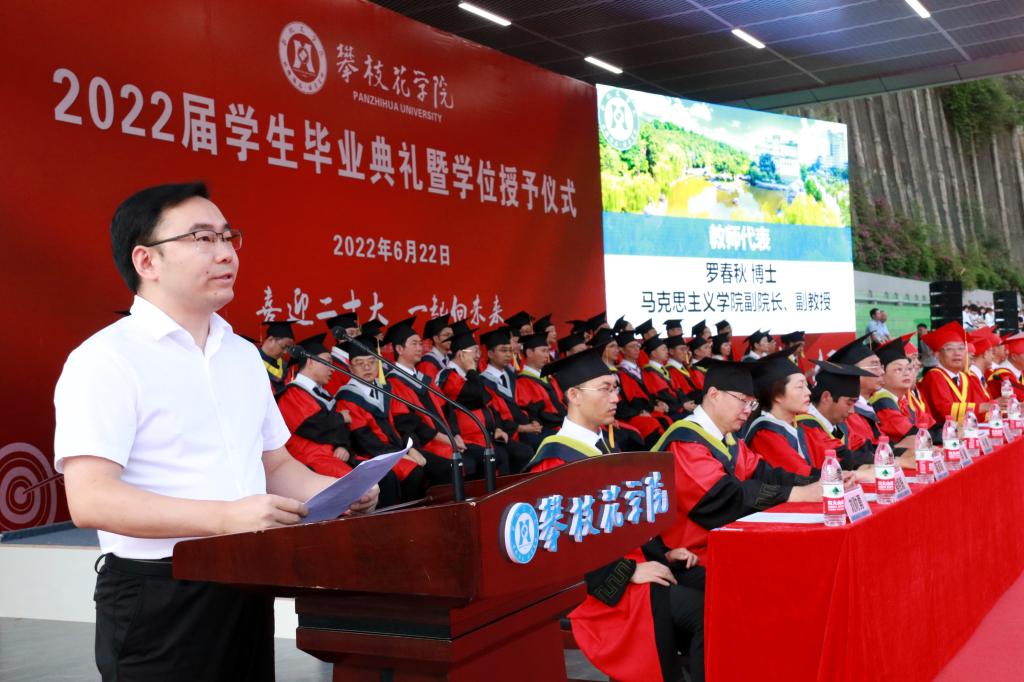 典礼上,党委副书记胥刚宣读《关于表彰四川省2022届优秀大学毕业生的决定》,副校长王兵宣读《攀枝花学院学位评定委员会关于2022届本科毕业生的授位决议》。