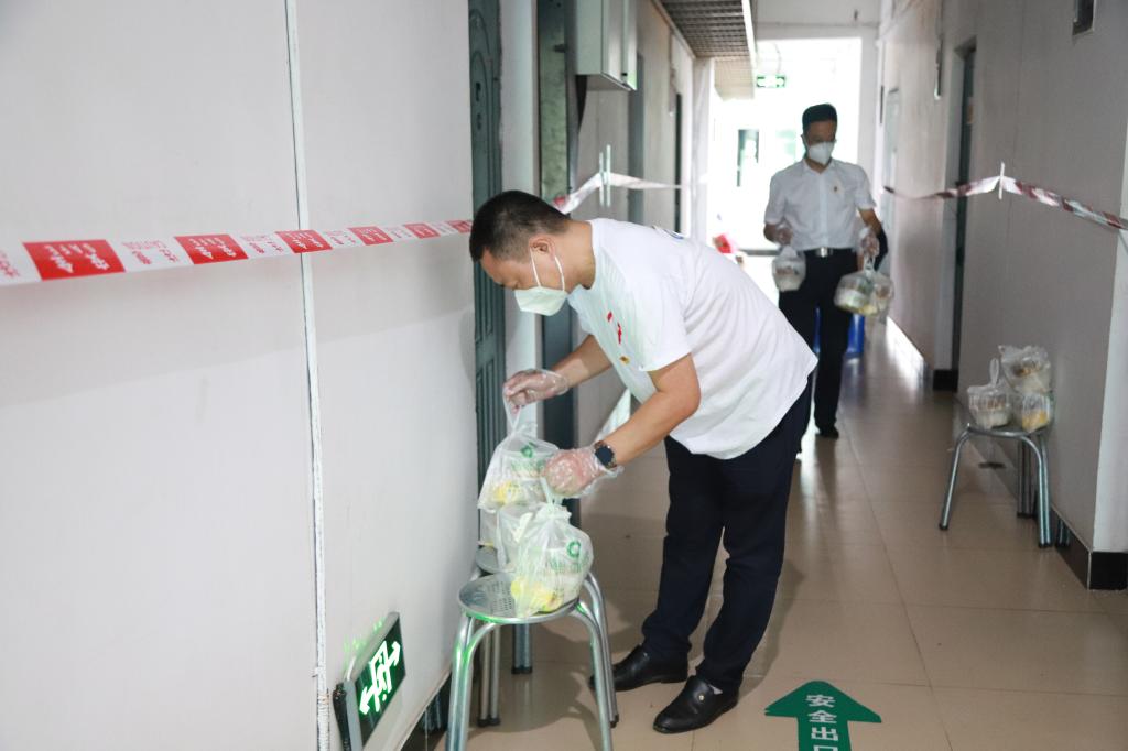 用心的服务保障。后管处协调学校各食堂、生活超市为到校新生做好供餐保障,从清晨3点开始准备早餐到晚上坚守到为最后一批新生提供热食饭菜。食堂工作人员、公寓管理人员、师生志愿服务队,严格按照疫情防控要求将新生的餐食无接触配送到新生寝室,并整齐摆放在寝室门口的凳子上,送上暖心提示纸条。