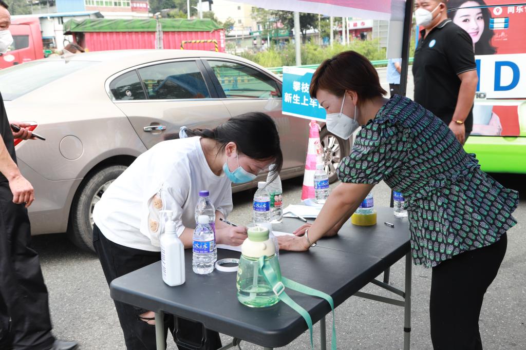 暖心的一站式接站。920日,为便于新生安全返校,减少中间环节,学校安排了8辆校地直通车,运送省内各地新生“一站式”返校;921-22日,学校安排14辆大客车作为闭环转运车,在攀枝花高速路口处、机场、火车站等地,全天候点对点的送学生直达校内学生公寓。师生志愿者们顶着烈日,热情周到地迎接来自省内外的新生及家长,为他们搬运行李,进行体温监测、身份信息核验、返校申请确认、手部消毒、二次测温等工作。在接站和转送新生的过程中,全体工作人员各司其职,从早上六点开始,一直工作到深夜,克服时间长、任务重等困难,耐心地为新生提供服务,确保把每一位新生安全送达学校。
