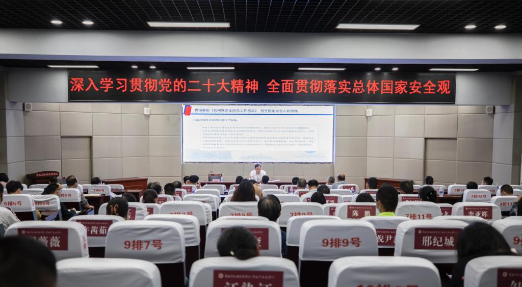 廖成波在讲座中深度解读了党的二十大报告对推进国家安全体系和能力现代化的论述,并紧密结合当前国家安全形势,以深厚的理论和真实的案例明确指出,唯有国家安全,才有社会稳定,才有国家强盛和民族复兴。他强调,要按照习近平总书记要求全面学习、全面把握、全面落实党的二十大精神,深刻理解总体国家安全观的内涵要义,准确把握当前维护国家安全和社会稳定工作的风险挑战,坚定不移贯彻落实总体国家安全观,谱写新时代国家安全新篇章。