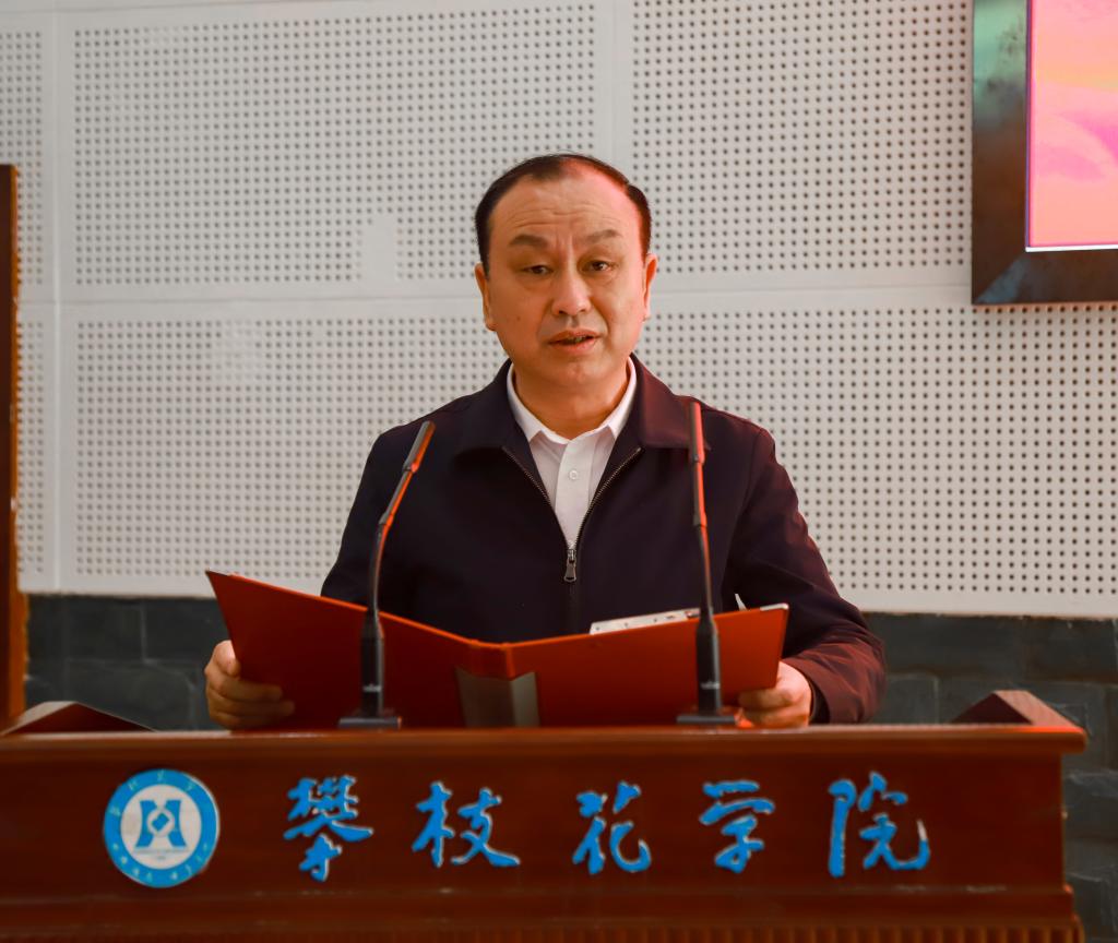 11月17日上午,由攀枝花市退役军人事务局和我校合作共建的攀枝花市退役军人学院成立大会在我校学术报告厅隆重举行。副市长、市公安局局长周强,攀枝花学院党委书记王斌、副书记胥刚,攀枝花军分区大校副司令员黄育松出席,市政府副秘书长邓红梅主持仪式。