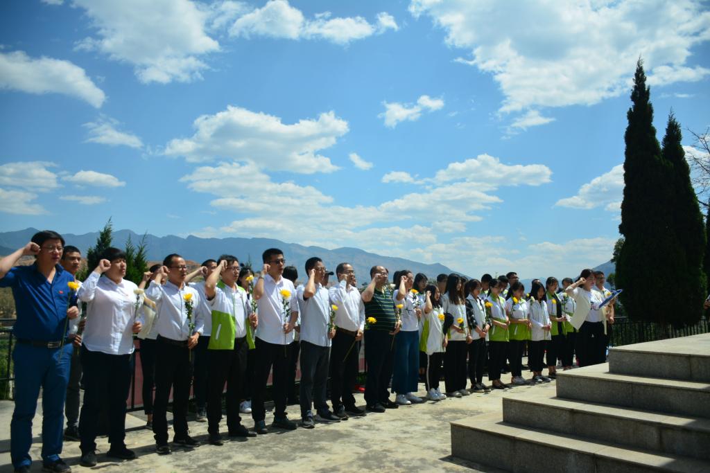 下午,师生们来到同德烈士陵园,缅怀为了祖国的解放、人民的安宁和攀枝花开发建设而英勇牺牲的英雄烈士。祭奠活动中,全体人员奏唱国歌、重温入党誓词、向烈士默哀、敬献鲜花瞻仰纪念碑,聆听了工作人员对烈士们英雄事迹的讲解。