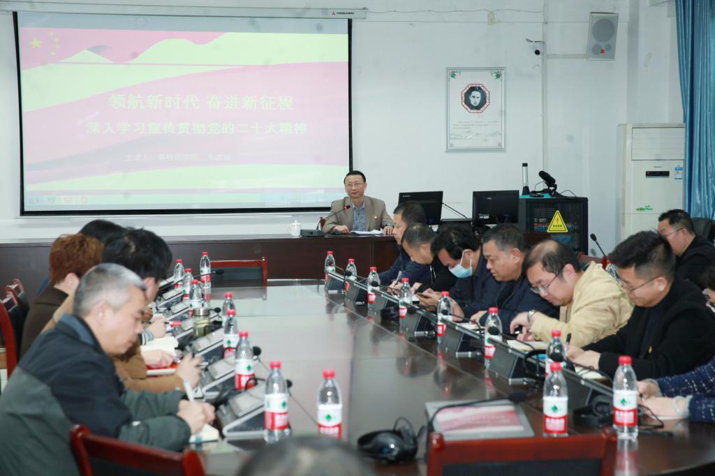 127日下午,校党委常委、副校长朱波强在外国语学院会议室为分管部门和联系学院师生作党的二十大精神宣讲报告。机关党委、后勤党总支、保卫处、资产公司干部职工,外国语学院党政班子成员、党员师生共同聆听宣讲报告。