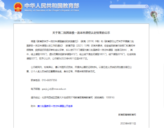 我校3门课程获批国家级一流本科课程