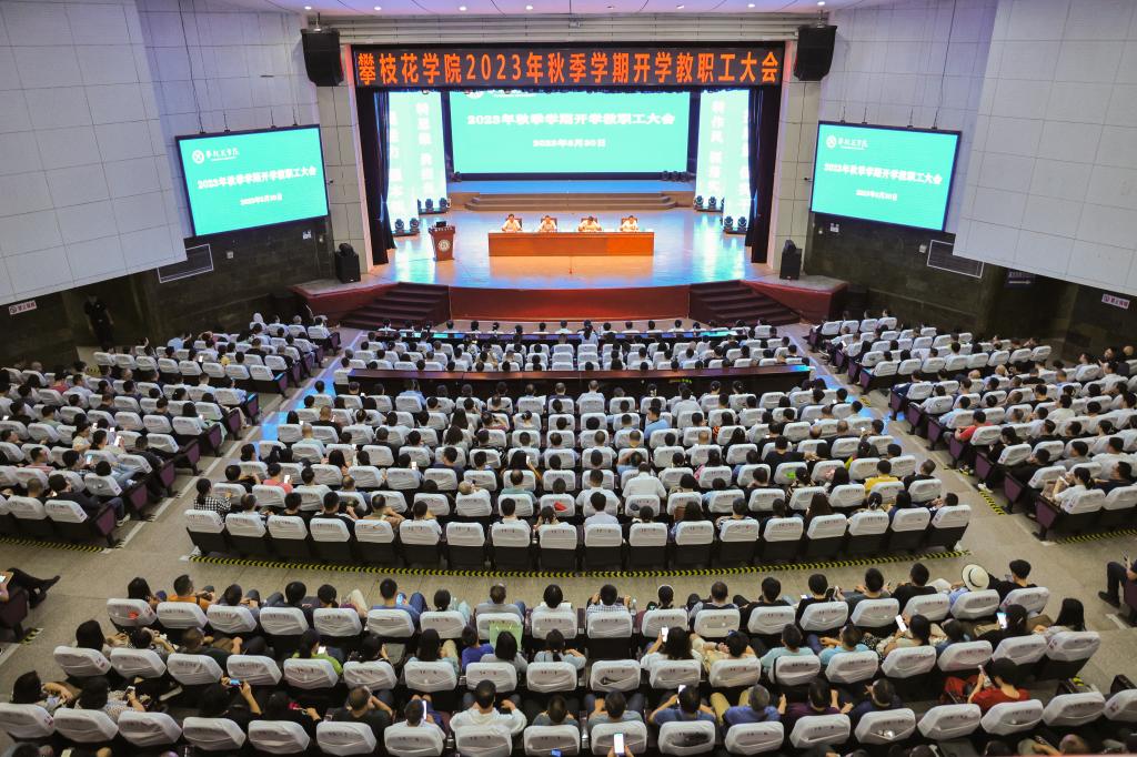 8月30日上午,我校在会堂召开全校教职工大会,会议以“深入学习贯彻习近平新时代中国特色社会主义思想,自律自强、大德大爱奋力谱写阳光健康美丽攀大新篇章”为主题,全面总结分析了学校当前学科建设、教学科研、人才队伍、招生就业、服务地方等工作情况,对新学期重点工作进行了部署安排。在校校领导、全校教职工共1000余人参加大会。党委书记胥刚主持会议并总结讲话。