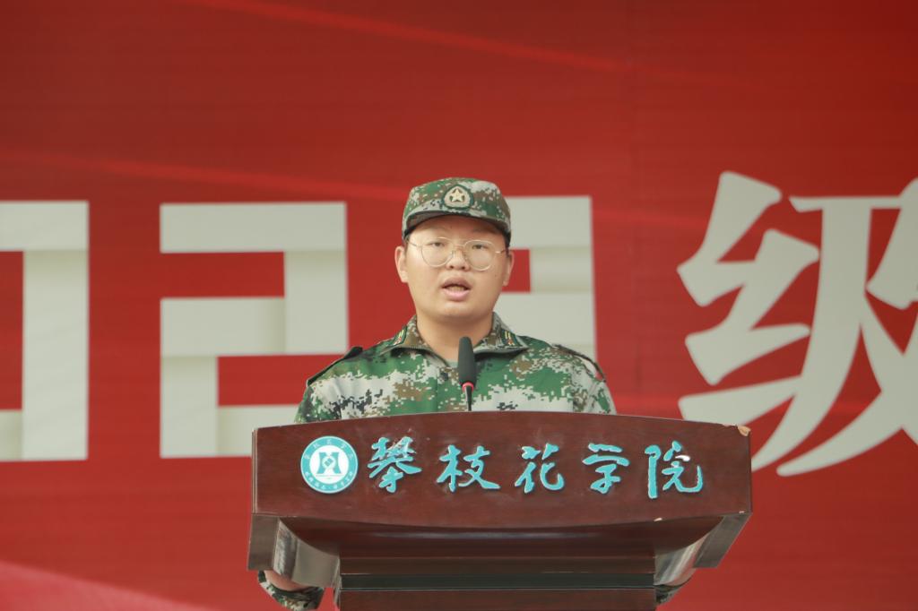 来自钒钛学院2023级的优秀学员方昕雨汇报了自己的军训感受和收获。他表示在军训中不仅锻炼体魄、磨练意志收获友谊,未来更加饱满的状态投入到学习和生活,争做阳光健康美丽攀大人