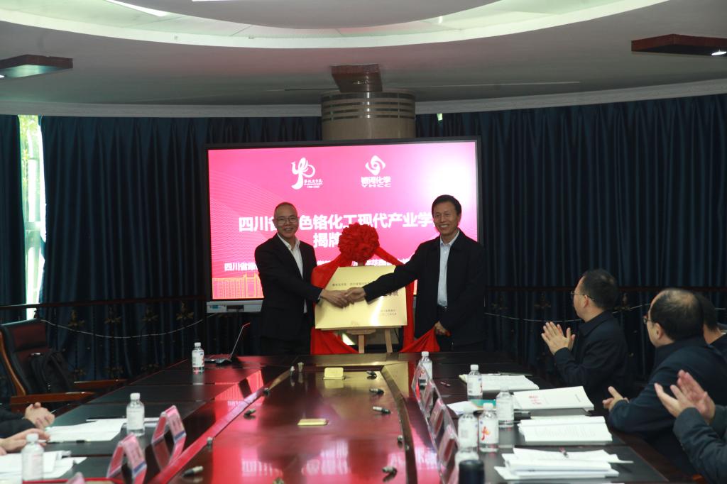 肖棱与王曙光共同为“四川省绿色铬化工现代产业学院”揭牌。