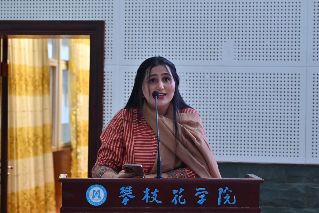 2024级留学生新生代表娜迦怀着激动的心情分享了自己选择留学攀大的心路历程,对学校在新生入学工作中的精细安排表示感谢,对自己在攀大的学习和美好未来充满憧憬,并祝愿所有新同学们在攀枝花学院知识和友谊双丰收。