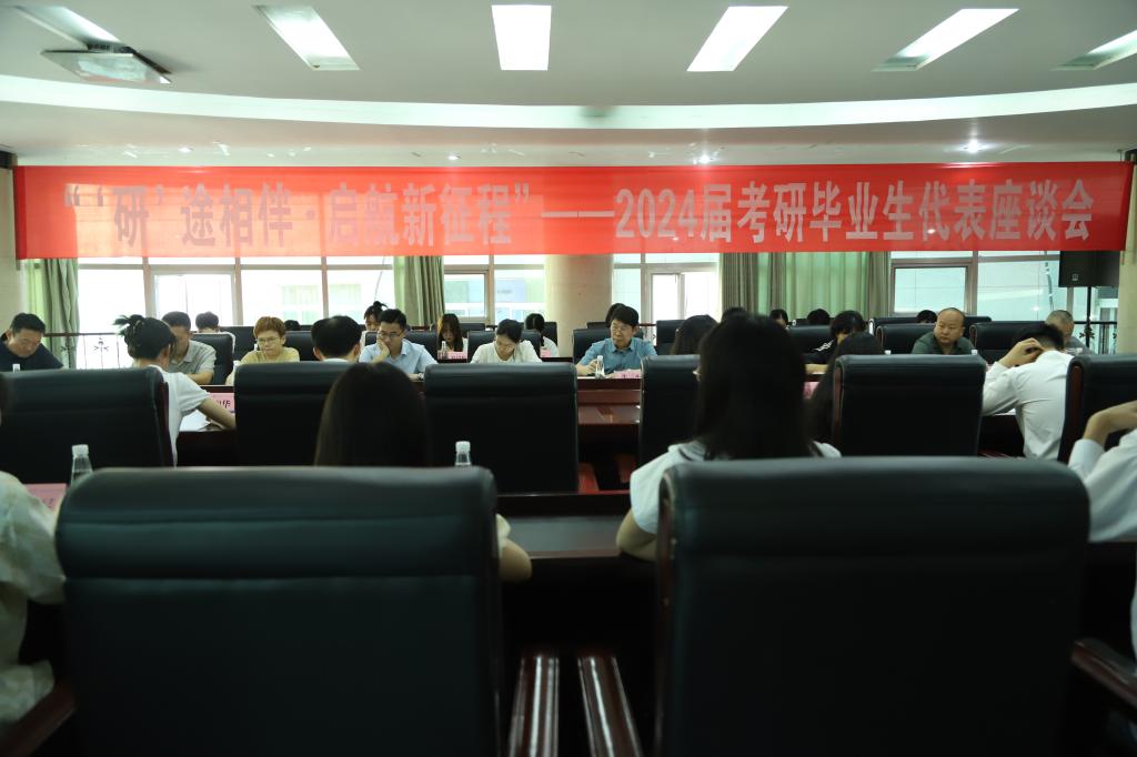 为深入学习贯彻习近平新时代中国特色社会主义思想,努力把学习成效落实到立德树人根本任务上来,以深入调查研究推动解决发展难题,429日、524日、530日,学校分别以“围绕聆听学‘声’·共话新发展”“‘研’途相伴·启航新征程”“激扬青春·建功新时代”为主题举行了3场毕业生代表座谈会,深入了解2024届毕业生在校期间的学习成长历程,广泛听取他们对学校人才培养的意见和建议。副校长石维富出席“围绕聆听学‘声’·共话新发展”座谈会,副校长朱云生出席524日、530日考研考公主题座谈会,相关职能部门负责人及100余名毕业生代表参加了座谈会。