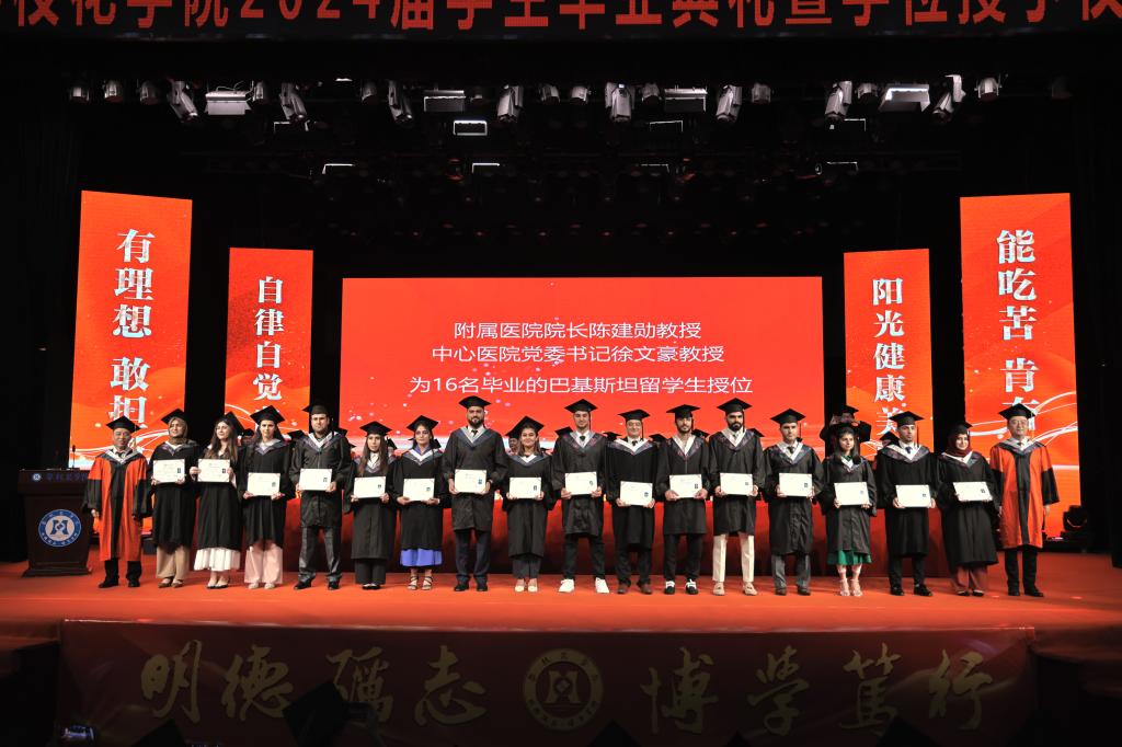 国际教育学院留学生代表张英杰在发言中表达了对母校和老师的感激之情,他表示会将在攀大六年的留学时光铭记于心,将所学倾心奉献家乡的医疗卫生事业,同时做中华优秀传统文化的学习者、传递者、交流者,推进中巴友谊。