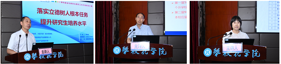 钒钛学院、生化学院、经管学院相关负责人从学科建设基本情况、材料与化工、会计硕点建设及专项核验工作推进情况、当前学科建设及研究生教育中存在的问题及下一步计划等方面分享了研究生培养经验。