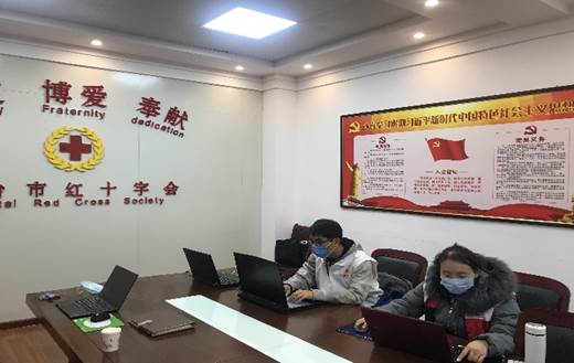 刘瑞峰(左)在邢台红会做数据处理