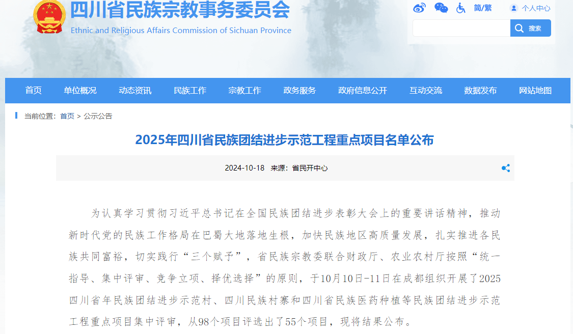 近日,四川省民族宗教委员会公布了2025年四川省民族团结进步示范工程重点项目评审结果我校帮扶单位——四川省甘孜州乡城县青德镇黑达村成功获批,该项目共获批1280万元资金支持,其中,民族地区开发资金1000万元,整合其他资金280万元。