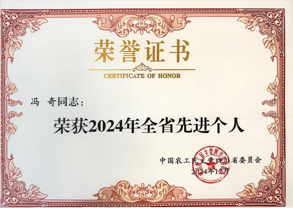 2024年农工党攀枝花学院总支在中共攀枝花学院党委和农工党攀枝花市委正确领导下,在学校统战部的大力支持下,围绕中心,服务大局,发挥特色,履行职能,积极参政议政、开展社会服务,加强自身建设,各项工作均取得新进展,分别被农工党四川省委会和攀枝花市委会评为“年度先进集体”,并荣获农工党攀枝花市委会成立40周年“先进集体”。农工党攀枝花学院总支主委冯奇被农工党四川省委会评为“年度先进个人”、被四川省欧美同学会(省留联会)评选为“优秀会员”;7名党员荣获农工党攀枝花市委会成立40周年先进个人。