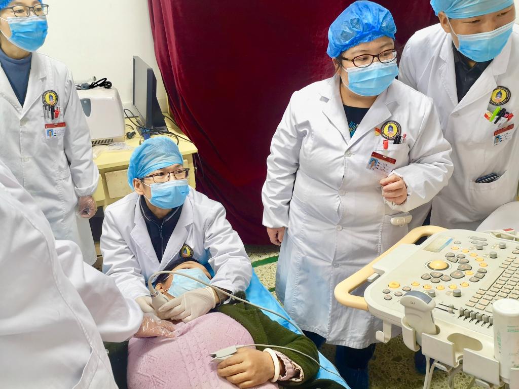 附属医院邓义江(左二)在木里县中藏医院指导开展超声引导下星状神经节阻滞新技术