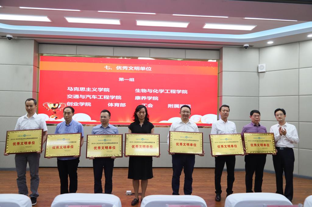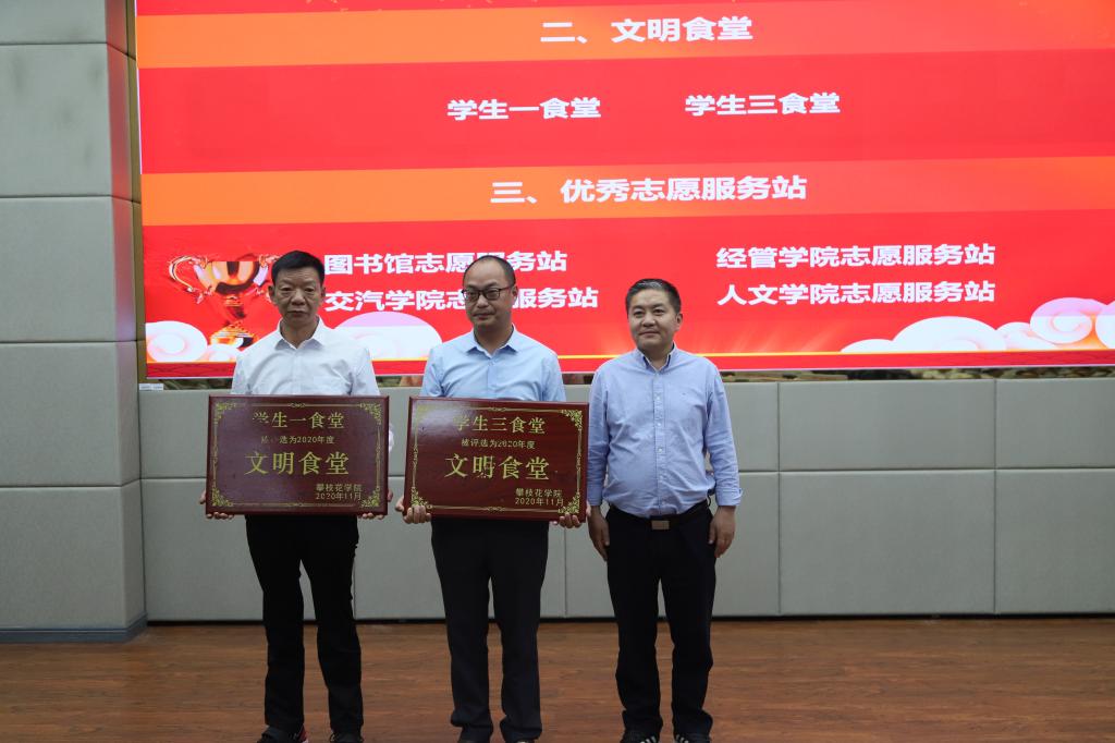党委副书记、校长王曙光宣读《攀枝花学院关于表彰2018-2020年度全国文明校园创建活动先进集体和先进个人的决定》表彰文件。与会校领导、党委宣传部负责人分别为16个优秀文明单位、15个文明教研室、12个优秀文明班级、12个最佳文明寝室、2个文明食堂、4个优秀志愿服务站和39名创建工作先进个人颁奖。