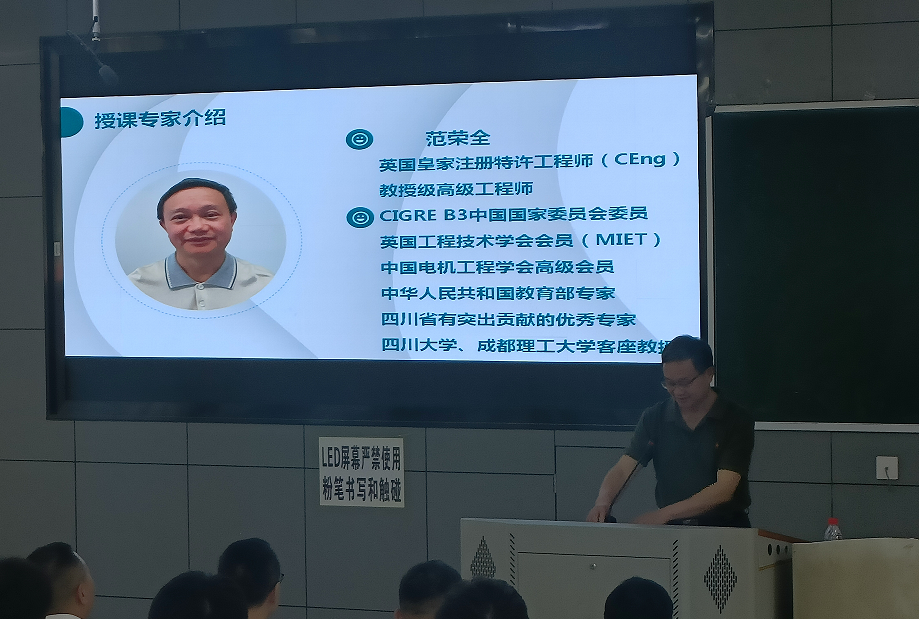 6月7日上午,国家电网公司范荣全教授应邀来校,在第二教学楼2-1教室作题为“新型电力系统背景下配电网发展模式”的学术报告。副院长廖其龙主持报告会,电气学院100余名师生代表聆听了此次报告。