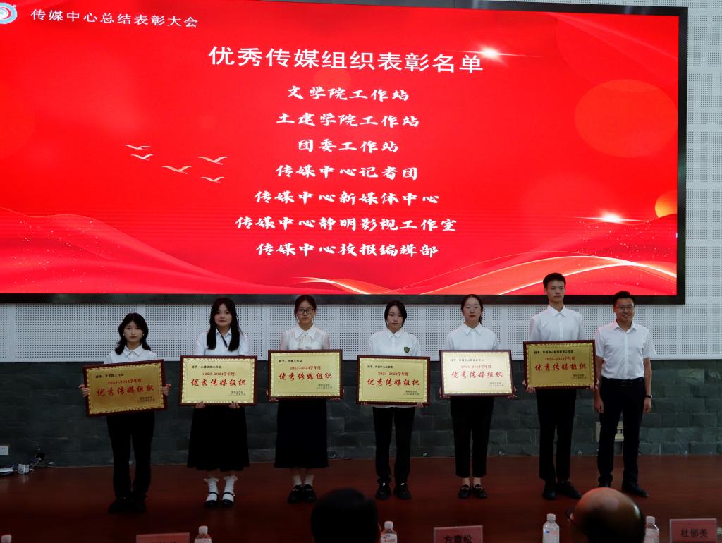 会议表彰了传媒中心优秀指导教师、传媒之星和优秀传媒组织,为传媒中心第八届主要干部颁发聘书。