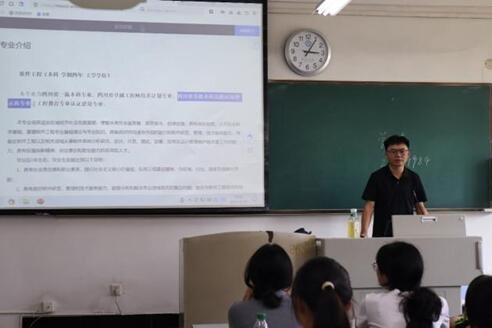 明德先进教师兰全祥以《专业认知:关键能力培养与大学生涯规划》为题,介绍了计算机专业的基本概况,对计算机专业教育的现状进行了深入剖析,他强调在大学学习过程中要转变思维,善于寻找学习资源,着重培训专业技能学习中的关键能力。