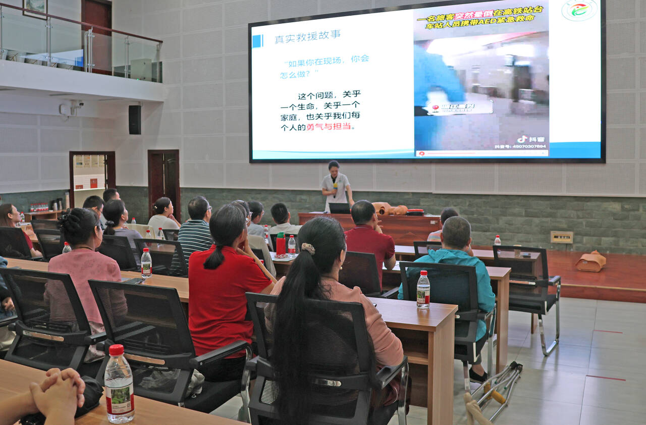 康养学院副院长吉辉、实训中心主任刘继红、护理学教师张利萍、蔡晓等分别为师生讲授了“自动体外除颤仪AED使用注意事项与使用方法”“心肺复苏方法与操作要点”“急救护理与措施”“即时止血与包扎技术”,并现场为大家作了操作过程的详尽演示,大家还在老师的指导下开展了模拟救护操作实践。