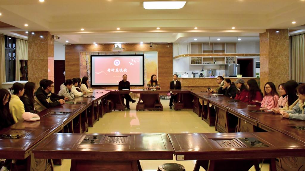 为帮助备战考研的学子明晰方向、缓解压力,文学院于1126日晚在凌云楼茶艺室举办考研专题座谈会。文学院党委副书记郑辉、学生科科长周莹、学生党支部书记兼22级辅导员周立丙与22级考研备考学子参与座谈